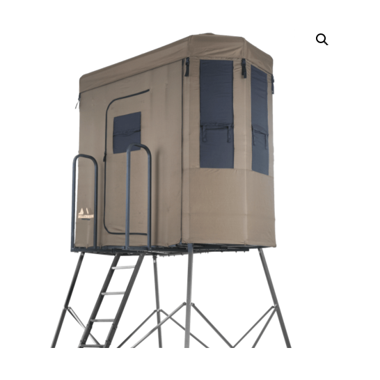 With adjustable shooting windows on all sides, it’s perfect for both rifle and crossbow hunting. The roomy interior, sliding door entry, and included ladder make it easy to access and comfortable to stay all day—no matter the weather.